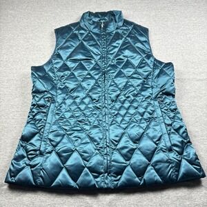 Lands' End Women's Diamond Quilted Down Puffer Vest Emerald Green Size Medium