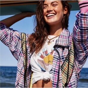 NWT Free People We The Free Penny Plaid Linen Blend Zip-Up Jacket in Size XS, Medium.