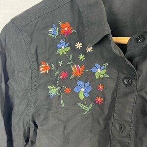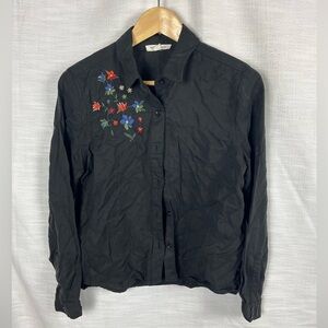 beachlunchlounge Black Blouse Floral Embroidered Boho Vintage Size S