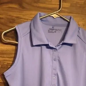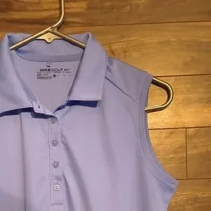 Elevate your game with this classic Nike Golf sleeveless polo. Designed in a beautiful light periwinkle/lavender blue, this top features Nike’s signature Dri-FIT moisture-wicking technology to keep you cool and dry on the course or the court.