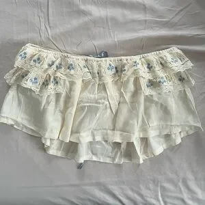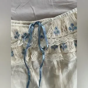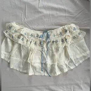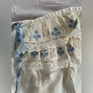 Features: Tube style, bowtie at front, lace and embroidery at ruffled top