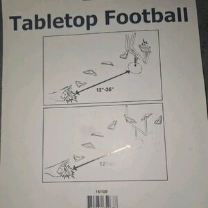The tabletop football game includes a 6 1/2" plastic goal post and a rubber triangular-shaped "football" so you can play a friendly game no matter what table you're sitting at.