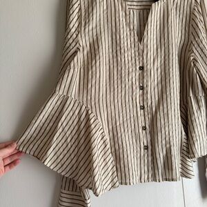 Free People Making Memories Button Down Blouse Golden Stripes Women’s Size Large