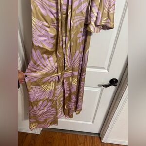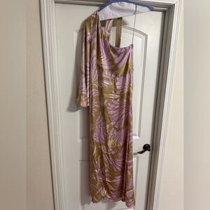 Chic one-shoulder maxi dress with bold floral design. Features a flowing silhouette and elegant slit. Alexis Lio dress in Serenity size small worn once