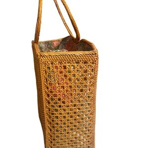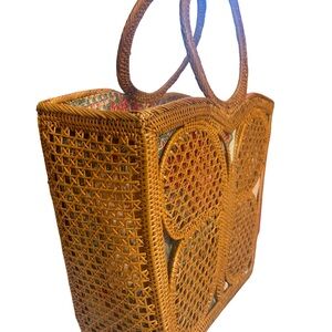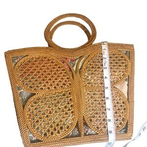 Handmade Bali Butterfly Rattan Tote Bag | Large Woven Wicker & Batik Lining