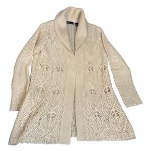 Moda International Cream Mohair Long Cardigan Sweater Large Cottagecore Boho