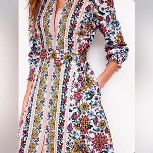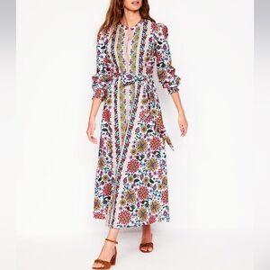 BODEN RUBY LINEN BLEND SHIRT DRESS IVORY/BOTANICAL SPRIG - 4P