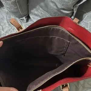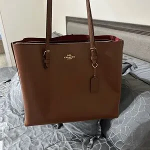 Stylish Coach tote in rich tan leather. Features elegant design and spacious interior. Ideal for daily use.