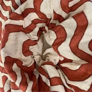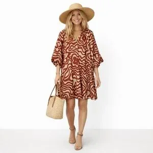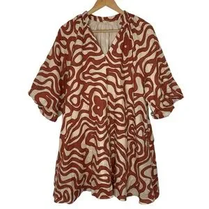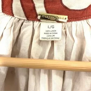 Magaschoni size Large 100% Linen Dress Puffy Sleeves Pockets Lined Rust Tan