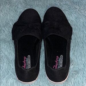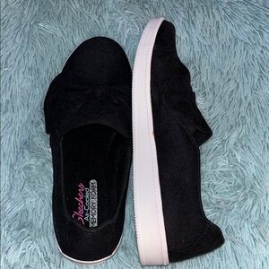 Chic SKETCHERS black slip-ons with bow accent. Easy and comfortable fit.