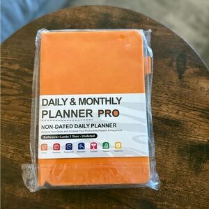 Bright orange planner for daily and monthly organization. Non-dated for flexible use.