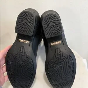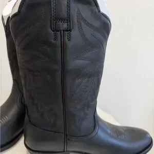 Sleek black leather boots with intricate stitching. Perfect for a stylish western look.