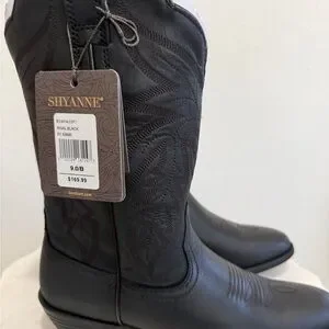 Shyanne Black Leather Western Heeled Boots NIB Size 9M