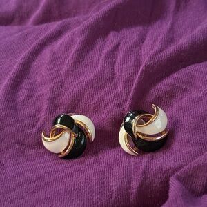 Elegant Black and White Gold-Tone Earrings