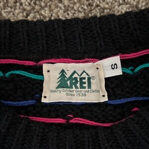 REI Women’s Black Sweater with Pink, Blue, and Green Heart Detailing