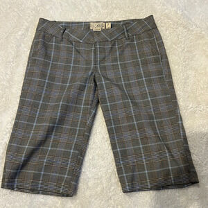 Guess Bermuda Shorts Womens 32 Grey Plaid Stretch Low Rise Trouser Fit Dressy