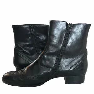 Chic black leather booties. Stylish brogue accents. Perfect for any occasion. Sizing reflects UK sizing The most reliable rule of thumb is that US size = UK size + 2.