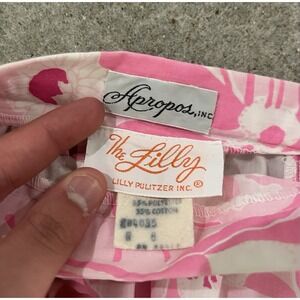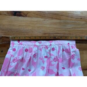 The Vintage Lilly Pulitzer Pink Floral Maxi Skirt is a stylish and playful addition to any woman's wardrobe. Made from cotton with a high rise and A-line style, this skirt features a beautiful pink floral pattern with ruffle and eyelet trim accents for added charm. The long length and zipper closure make it perfect for a cruise or beach vacation, adding a touch of whimsy to your outfit. Perfect for size 6 regular, this Lilly Pulitzer skirt is a unique and vintage piece that will surely make a statement.