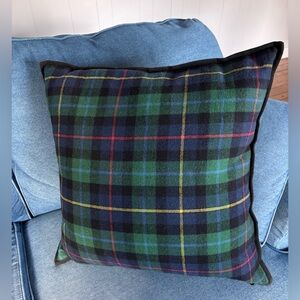 ClassicTartan Plaid 23”Throw Pillow in Green & Navy Wool Like Fabric Black Trim