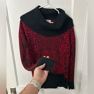 Michael Kors Red and Black Cowl Neck Sweater