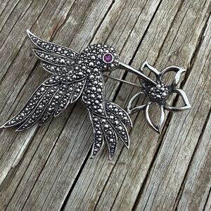 Vintage Avon SilverTone Hummingbird Pin/Brooch Red Eye 2.5” W X 2” Ht. Preowned