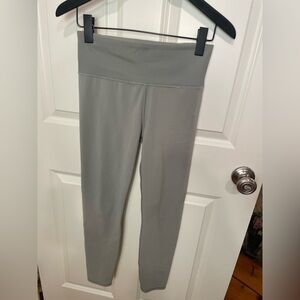 The best leggings I've worn, but this color way is not for me. No runs, stains, the waist band has a thread loose but it doesn’t effect fit, this is pictured. Selling with the matching Vuori Bra. Gorgeous sage green color.