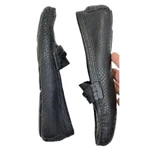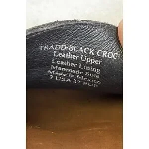 Charleston Shoe Co Tradd Penny Loafers Women's Sz 7 M Black Leather Slip-on Croc