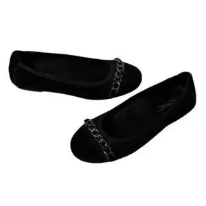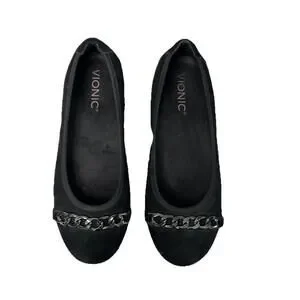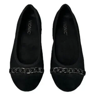 Vionic Pera Womens 6.5 Black Suede Ballet Flats Chain Accent Shoes Slip On