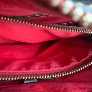 Dooney and Bourke Denim Color & Brown Leather Quilted Bag with Heart Accents