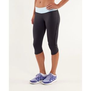 Lululemon Run: Fast and Free Crop deep coal/mini squiggle emboss caspian blue 6