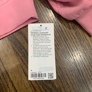Brand new with tags Lululemon Softstreme Perfectly Oversized Cropped Crew Pink Tide Size 4. Pet and smoke free home. A bit wrinkly from storage.