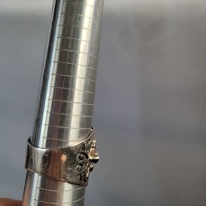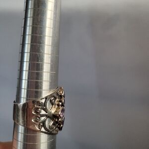 This exquisite ring features a stunning array of purple gemstones set in a beautifully crafted silver band. Perfect for adding a touch of elegance to any outfit. size is about a 9.5. see pic
