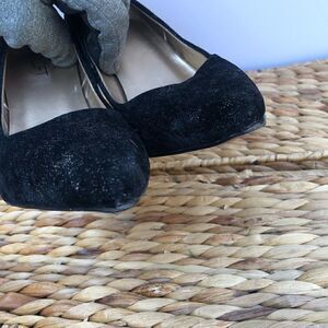 Ann Taylor Loft Black Velveteen Gold Glitter Heels