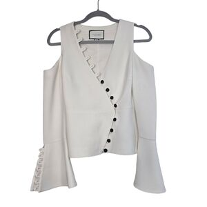 ALEXIS White Noere Cold Shoulder Asymmetrical Button detail Tux Top.