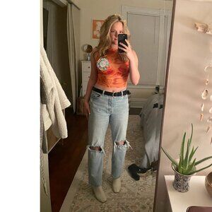 Abercrombie & Fitch The Dad High Rise Jeans 29 / 8R Light Wash Distressed Knee