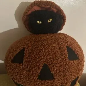 NWT! Celebrate Halloween with this adorable pumpkin plush featuring a black cat. Perfect for adding a festive touch to your home decor.