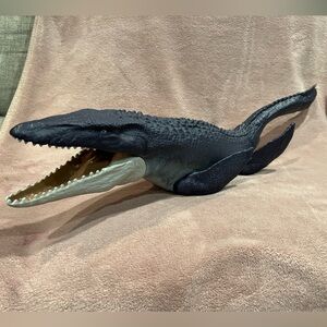 Realistic dinosaur toy in black and white. Perfect for collectors or play.