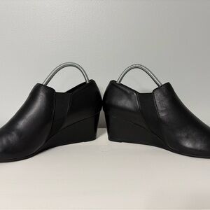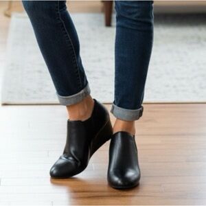 Vionic Stanton Black Leather Wedge Booties – Size 9