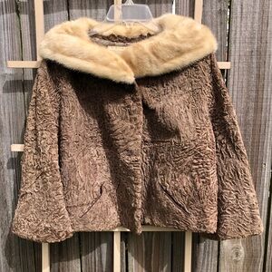 1950s Vintage Milk Chocolate Broadtail Jacket with Palomino Mink Fur Collar