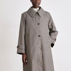 Elegant Barbour trench coat with a checkered design. Offers a timeless look and comfortable wear.