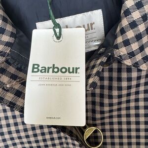 Barbour Nadine Tan and Navy Check Trench Coat Size 4 NWT