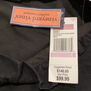NWT swing dress with ruffle neckline and v-neck back featuring a bow. Never worn. Jet black.