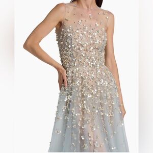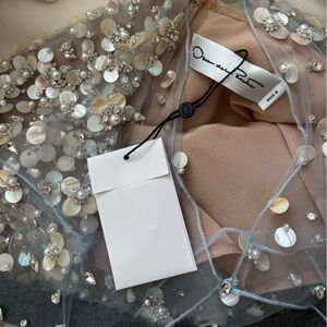 Oscar de la Renta Embellished Floral Mother-of-Pearl Embroidered Tulle Gown