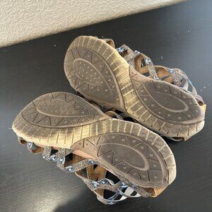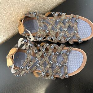 Baretraps Samina Women’s Gladiator Sandals Size 8 Tan And Blue Shoes Strappy Zip