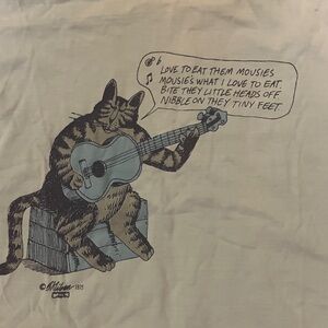 Charming cat playing guitar design. Cream background. Perfect for cat enthusiasts.