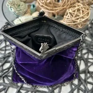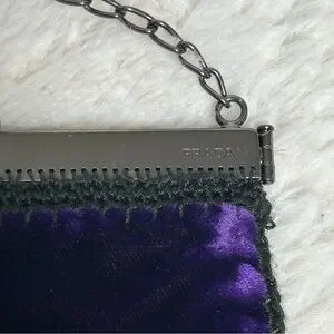 PRADA Velvet Clutch Purse Chain Strap Tulip Kiss Lock: Deep Purple Small