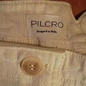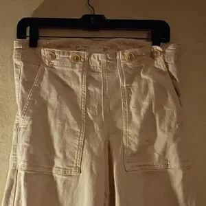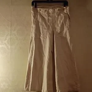 Super wide leg cream pants with button detail by Pilcro. Size 28. High waisted, super cute details on these. Great for Spring. Great for work, church, fun times, vacays. Good used condition, no flaws.