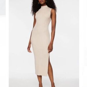 Elegant Knit Mock Neck Black Sleeveless Dress (In BLACK)