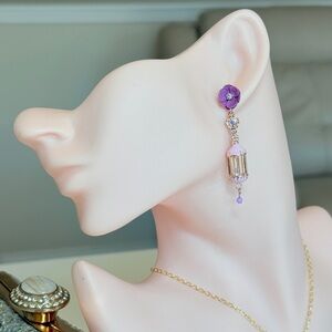 🌷 Purple and Pink Floral Drop Earrings