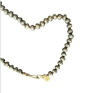 Sleek and stylish chain necklace. Features a gray/green and gold design. Perfect for any occasion.